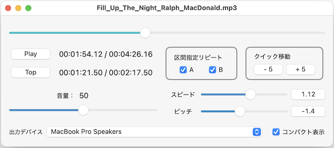本アプリは、テープ起こし向けの音声ファイル再生プレーヤーです。