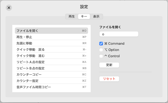 ※ キー設定は、[テープ起こしプレーヤー] - [設定] の [キー] タブ を参照してください。